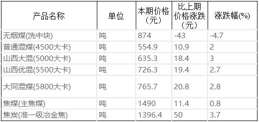 国家统计局10月24日公布的数据显示,10月中旬全国动力煤价格下跌为主;各煤种具体价格变化情况如下: