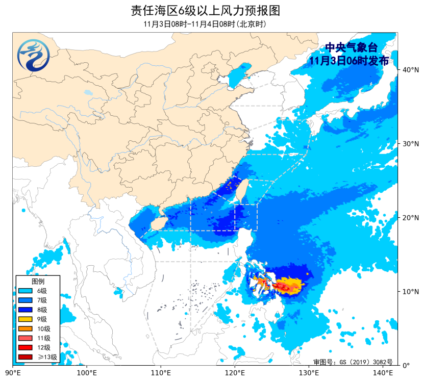 受冷空气影响,11月3日至5日,黄海、东海海域将有6~7级、阵风8级的偏北风,台湾海峡、巴士海峡将有6~8级、阵风9~10级的东北风,南海海域将有10~11级、阵风12~13级的东北风。