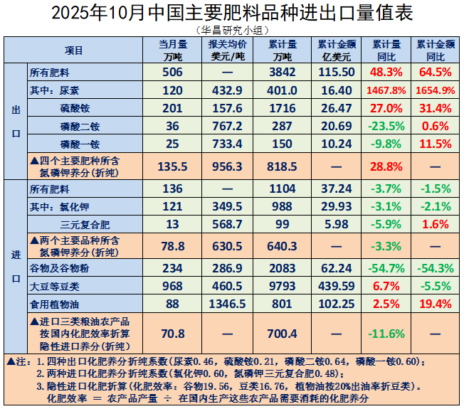 据中国海关统计,2025年10月中国共出口各种肥料506万吨;其中,尿素120万吨,硫酸铵201万吨,磷酸二铵36万吨,磷酸一铵25万吨。